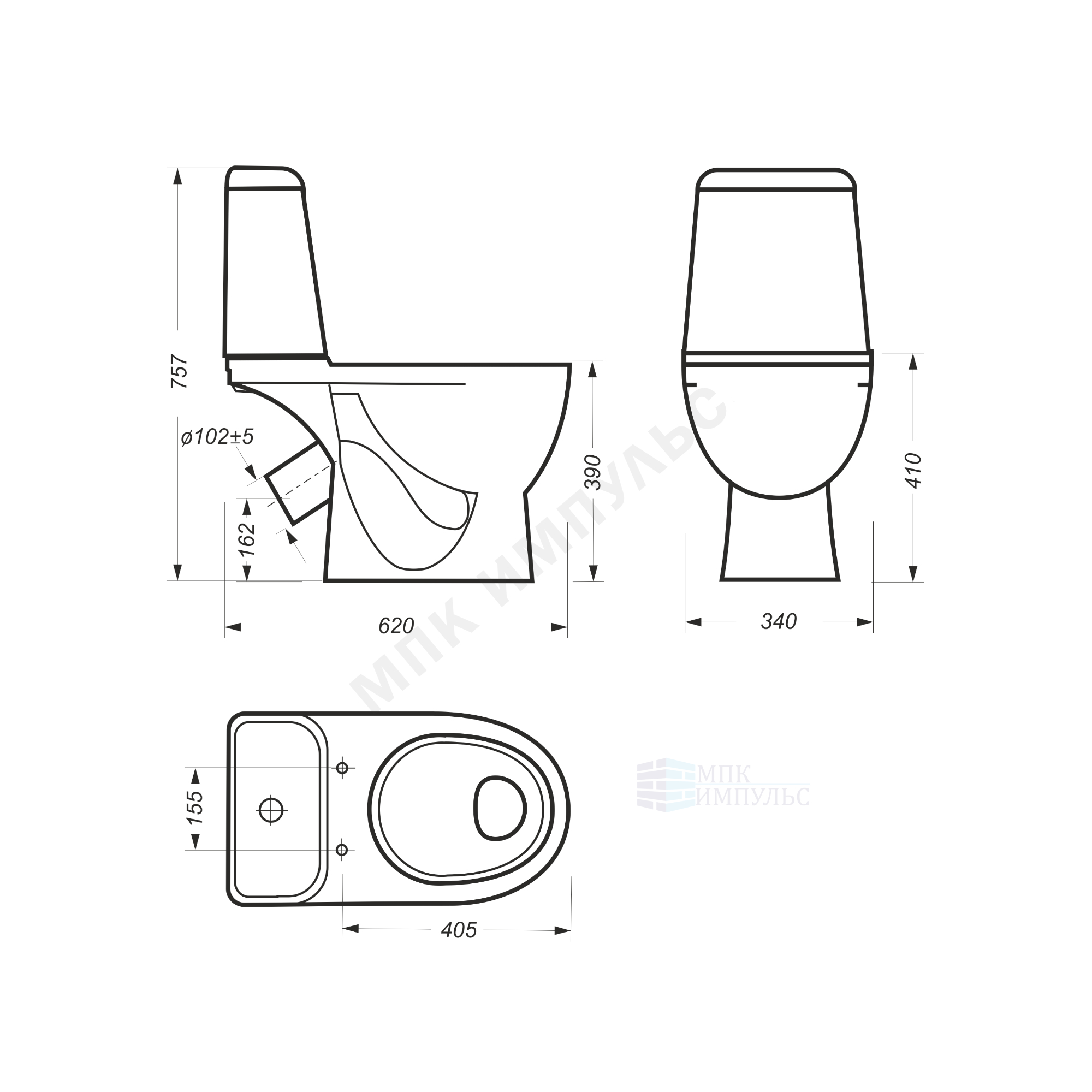 Унитаз-компакт косой выпуск нижний подвод с арматурой 2/реж слив кнопка с сиденьем дюропласт микролифт белый Max Comfort Sanita Luxe WC.CC/Max/2-DM/WHT.G/S1