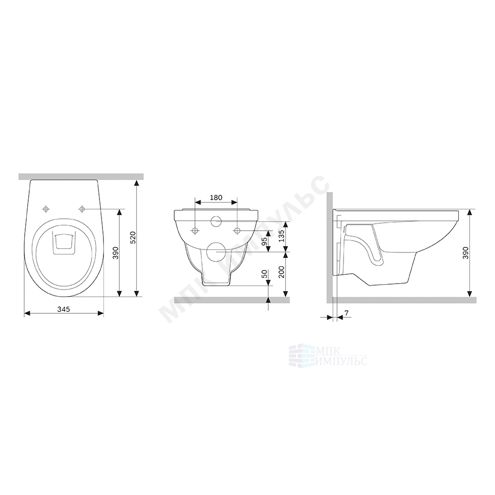 Унитаз подвесной горизонтальный выпуск с сиденьем дюропласт микролифт белый Jupiter AM.PM DX77C1738SC