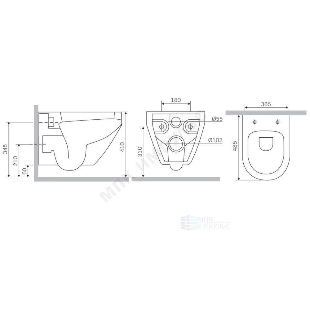 Унитаз подвесной горизонтальный выпуск с сиденьем дюропласт микролифт белый Spirit V2.0 AM.PM C701700WH