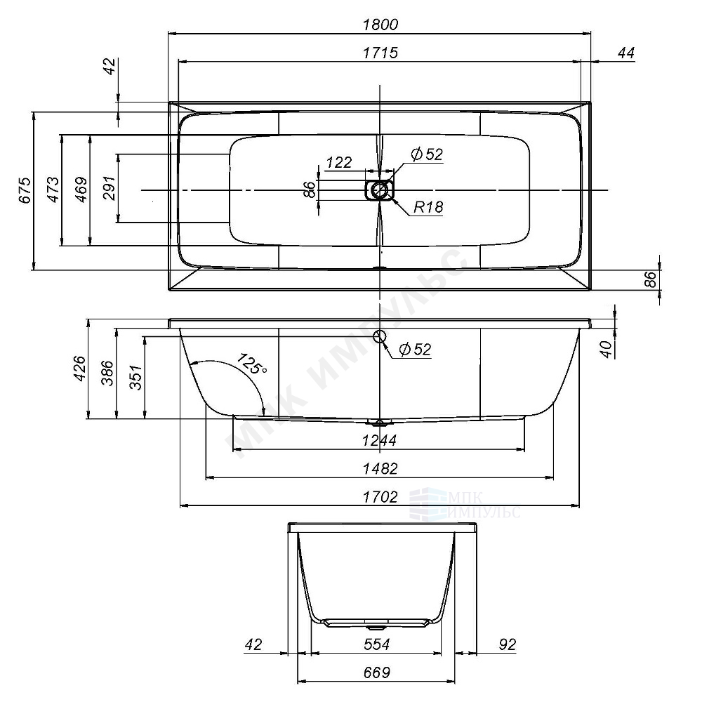 Ванна акриловая Func 180х80см белая AM.PM W84A-180-080W-A