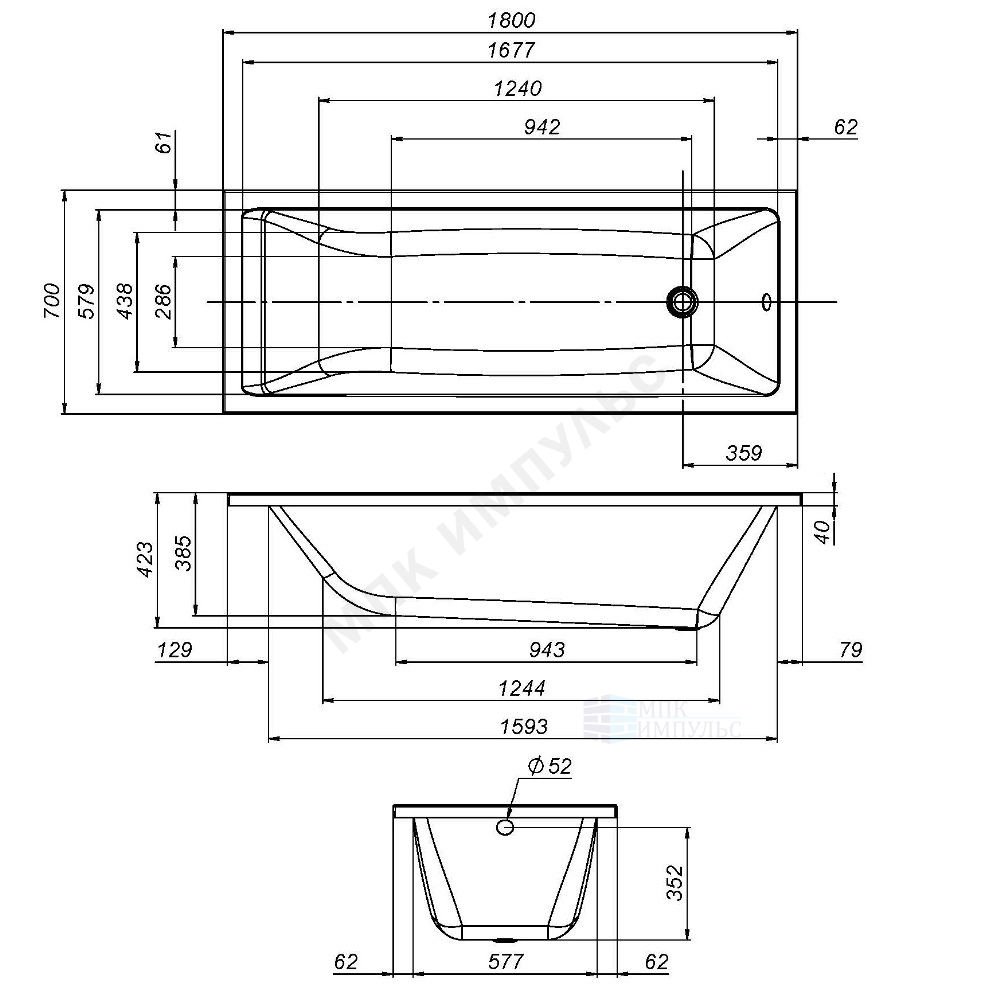 Ванна акриловая Gem 180х70см белая AM.PM W93A-180-070W-A