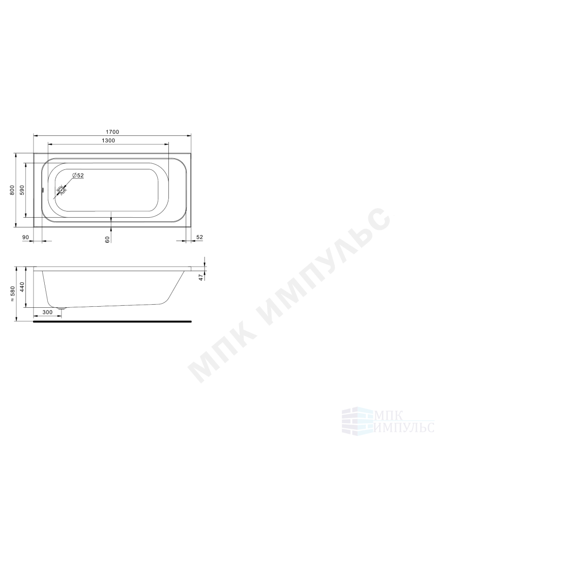 Ванна акриловая Ламма 170х80см без ножек Santek 1.WH50.1.763