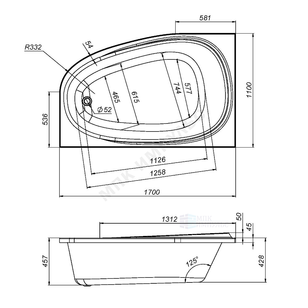 Ванна акриловая Like 170х110см левосторонняя белая AM.PM W80A-170L110W-A