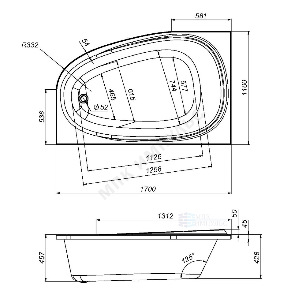 Ванна акриловая Like 170х110см правосторонняя белая AM.PM W80A-170R110W-A