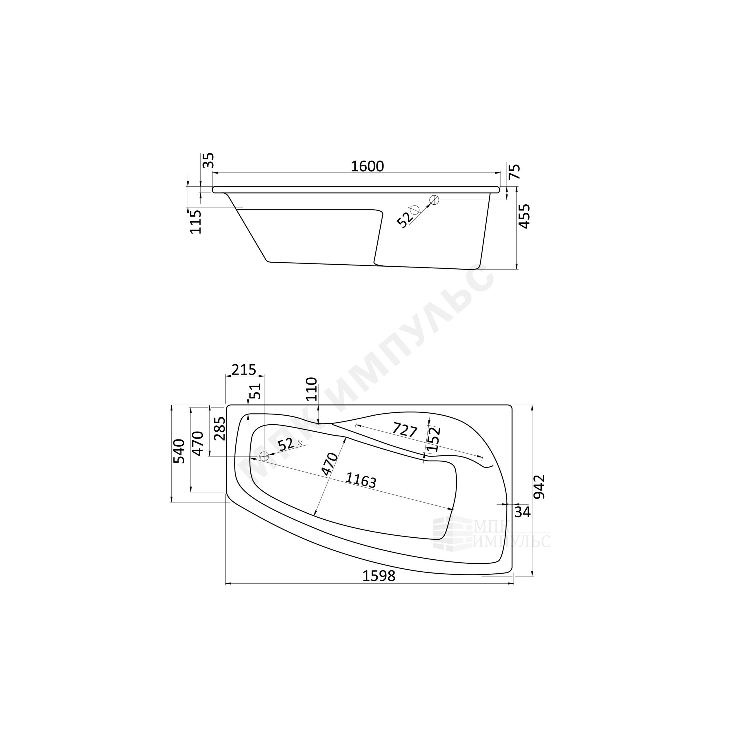 Ванна акриловая Майорка XL R 160х95см без ножек правосторонняя Santek 1.WH11.1.990