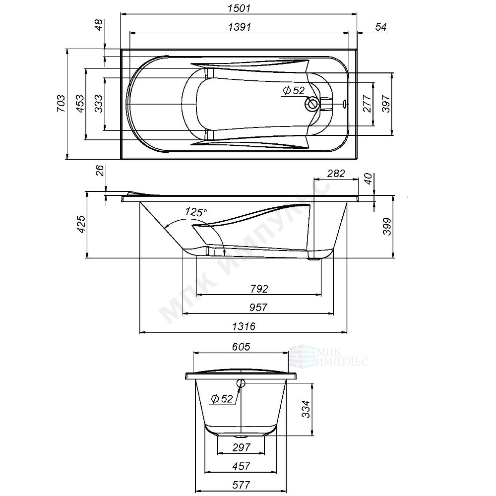 Ванна акриловая Sense 150х70см белая AM.PM W76A-150-070W-A