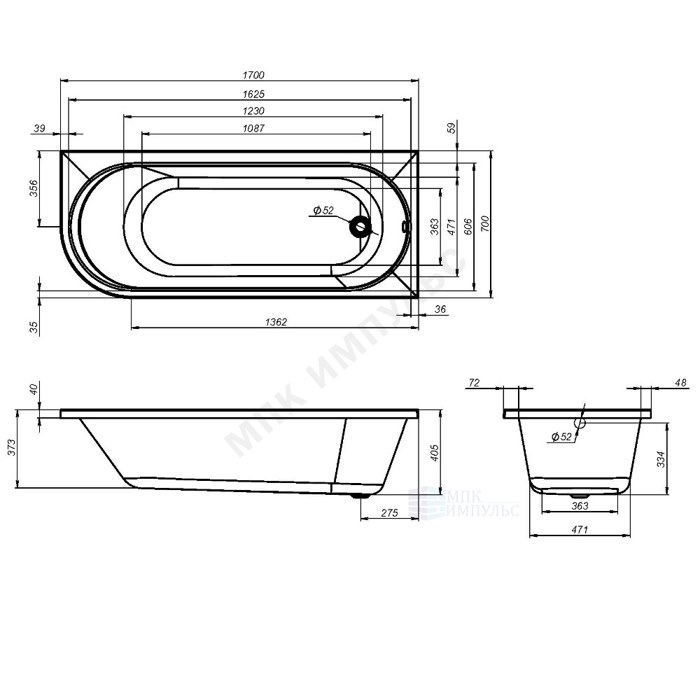 Ванна акриловая X-Joy 170х70см правосторонняя AM.PM W94A-170R70W-A
