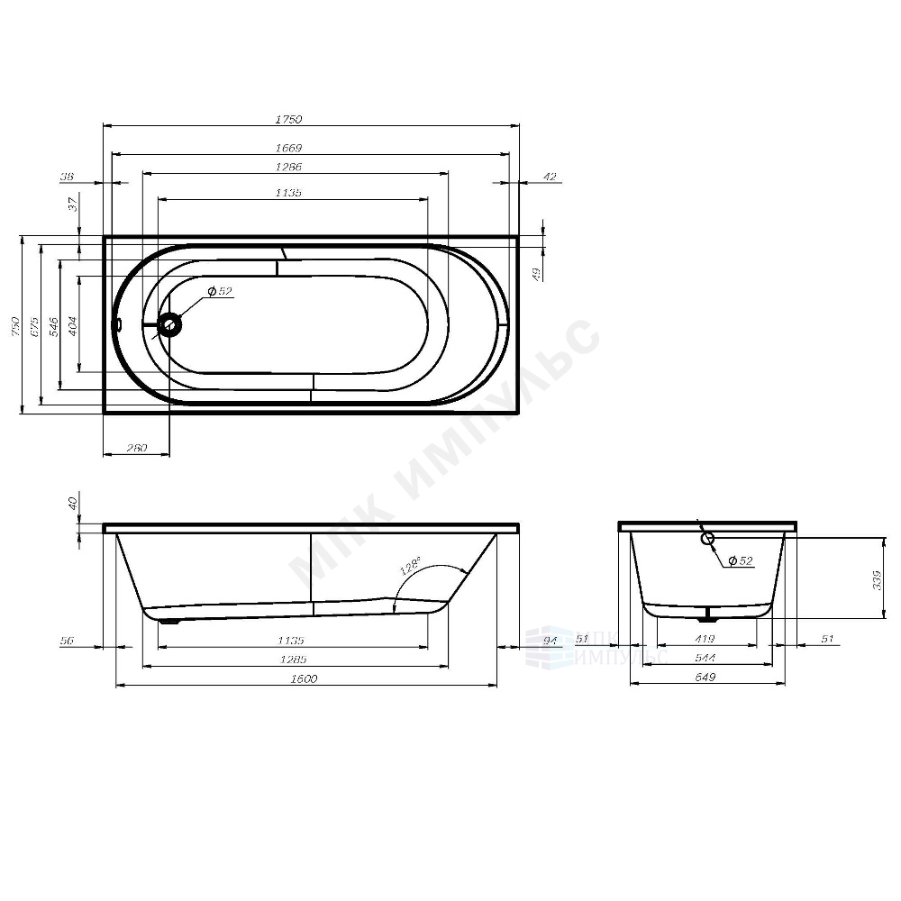 Ванна акриловая X-Joy 175х75см AM.PM W94A-175-075W-A