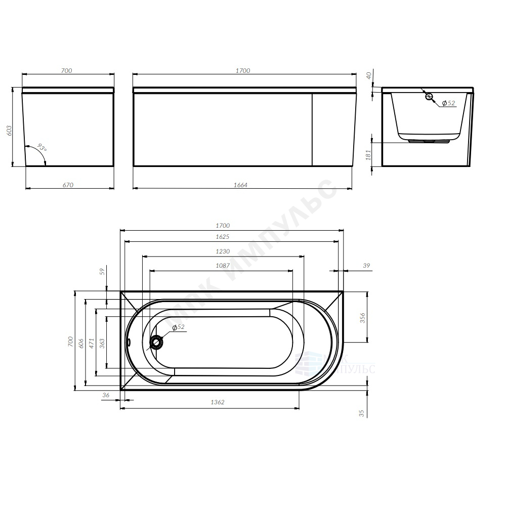 Ванна X-Joy 170х70см с каркасом и панелью левосторонняя AM.PM W94A-170L70W-ARP