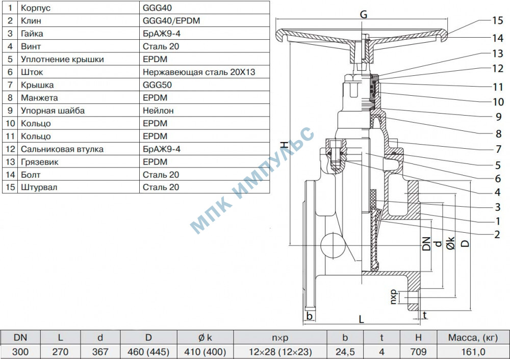 Задвижка чугун KR11 аналог МЗВГ обрезиненный клин EPDM ГРАНАР Ду 200 Ру16 Тмакс=120C фл ADL CV01F99858