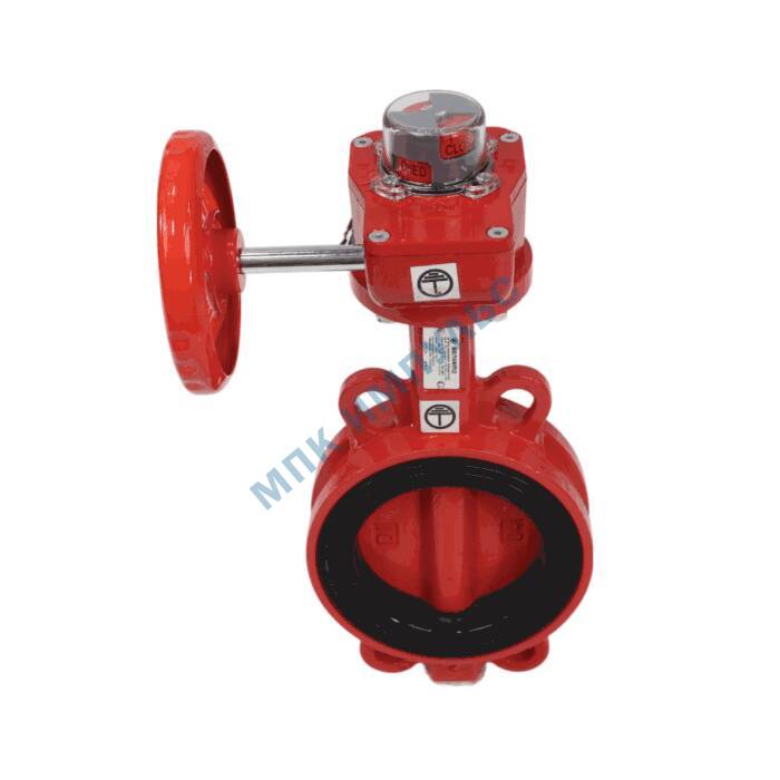 Затвор дисковый поворотный чугун FBV-RA Ду 200 Ру16 межфл EURO с редуктором диск чугун манжета EPDM с концевыми выключателями для систем пожаротушения Benarmo